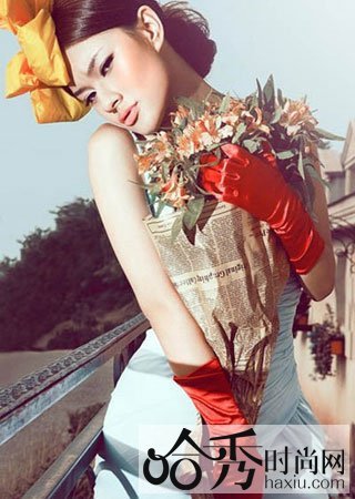 手捧花不仅能出现在婚礼当天,拍婚纱照时也能巧妙的利用。为了让照片拥有鲜明的色调,可以选择一款与婚纱或者礼服颜色对比强烈的捧花,也可以增加一些流行元素的小配饰,做一名时尚而高雅的新娘。