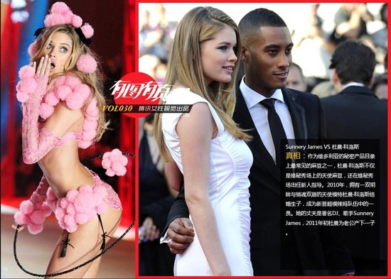 谁在约会全球最抢手的姑娘 (11) Sunnery James VS 杜晨·科洛斯。作为维多利亚的秘密产品目录上最常见的麻豆之一,杜晨·科洛斯不仅是维秘秀场上的天使麻豆,还在维秘秀场出任新人指导。2010年,拥有一双明眸与销魂双唇的天使模特杜晨·科洛斯结婚生子,成为新晋超模辣妈队伍中的一员。她的丈夫是著名DJ、歌手Sunnery James,2011年初杜晨为老公产下一子。