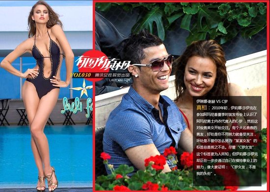 谁在约会全球最抢手的姑娘 (12) C罗 VS 伊琳娜·谢赫。2010年初,伊莉娜·莎伊克在参加阿玛尼春夏季时装发布会上认识了阿玛尼男士内衣代言人的C·罗 ,然后这对俊男美女开始交往。有个大名鼎鼎的男友,好处是你不用努力就备受关注,坏处是不管你怎么努力“某某女友”的标签总是挥之不去。尽管“C罗女友”这个标签更为人所知,但伊莉娜·莎伊克却正在一步步通过自己在模特事业上的努力,像大家证明:“C罗女友,不是我的头衔”。