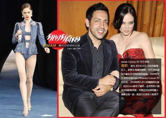 谁在约会全球最抢手的姑娘 (15) James Conran VS 可可·罗恰。身为《VOGUE》点名的超模红人,史蒂文·梅塞的缪斯,可可·罗恰是如今最炙手可热的国际超模。2009年可可·罗恰与室内设计师James Conran 开始交往,2010年两人步入的婚姻的礼堂。自从Coco宣布了婚讯,全世界的人都在为她默默祝福,毕竟这对完美的璧人能够走到一起,就足以让很多人艳羡不已。