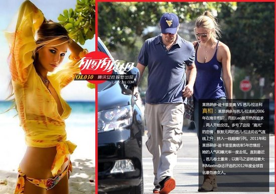 谁在约会全球最抢手的姑娘 (3) 莱昂纳多·迪卡普里奥 VS 芭儿·拉法利。莱昂纳多与芭儿·拉法莉2006年在南非相识,而后Leo展开热烈追求,两人开始交往。多亏了这段“高光”的恋情,默默无闻的芭儿·拉法莉名气直线上升,挤入一线超模行列。2011年和莱昂纳多·迪卡普里奥结束5年恋情后,她的人气和曝光率一度走低。直到最近,芭儿卷土重来,以黑马之姿艳冠意大利Maxim杂志评选的2012年度全球百名最性感女人。
