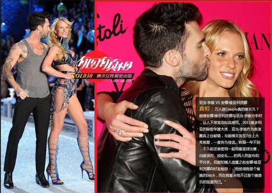谁在约会全球最抢手的姑娘 (6) 亚当·李维 VS 安娜·维亚利茨娜。万人迷Couple真的难长久?超模安娜·维亚利茨娜与亚当·李维分手时,让人不禁发出如此感叹。2011维多利亚的秘密年度大秀,亚当·李维作为表演嘉宾上台献唱,与超模女友在T台上大秀恩爱,一度传为佳话。转眼一年不到,不久前还亲密地一起观看篮球比赛,出席派对、颁奖礼……的两人则宣布和平分手。但据知情人透露之前安娜·维亚利茨娜向好友抱怨:“他觉得我是个难搞的bitch,而在我看来他不过是个搞音乐的混蛋而已。”