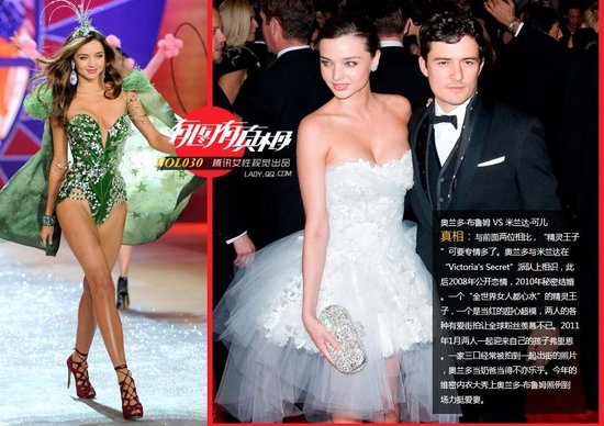 谁在约会全球最抢手的姑娘 (7) 奥兰多·布鲁姆 VS 米兰达·可儿。与前面两位相比,“精灵王子”可要专情多了。奥兰多与米兰达在“Victoria\'s Secret”派队上相识,此后2008年公开恋情,2010年秘密结婚。一个“全世界女人都心水”的精灵王子,一个是当红的甜心超模,两人的各种有爱街拍让全球粉丝羡慕不已。2011年1月两人一起迎来自己的孩子弗里恩。一家三口经常被拍到一起出街的照片,奥兰多当奶爸当得不亦乐乎。今年的维密内衣大秀上奥兰多·布鲁姆照例到场力挺爱妻。