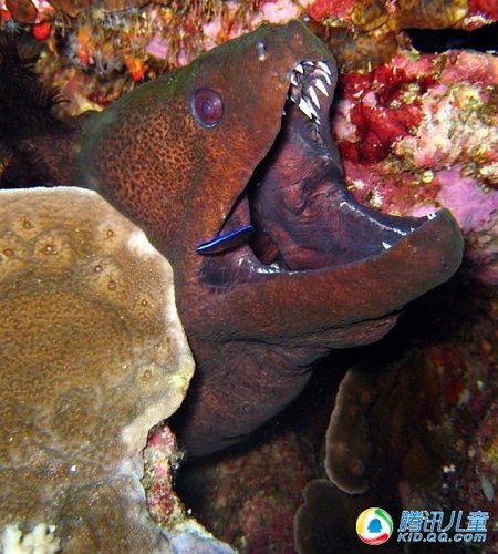海鳝的喉咙内也长有一副颚,同样武装着锋利的牙齿。